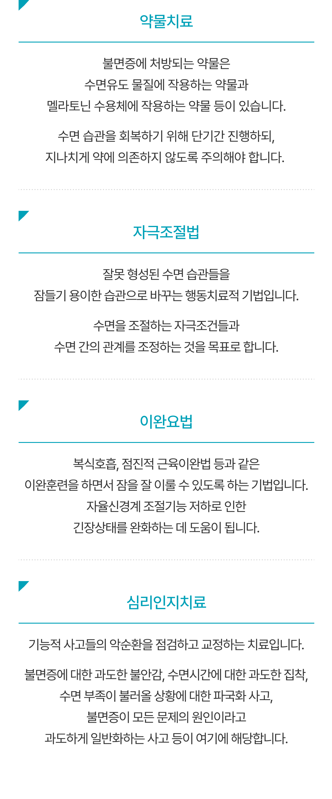 수면을 조절하는 자극조건들과 수면 간의 관계를 조정하는 것을 목표로 합니다.