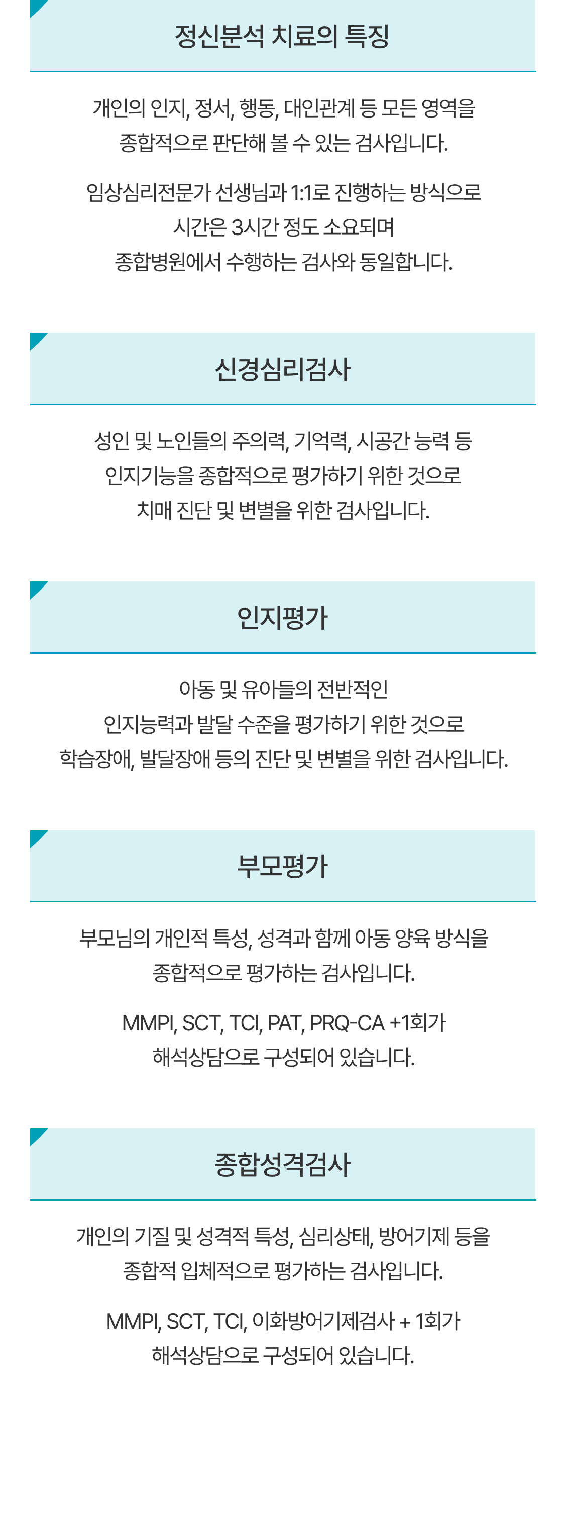 MMPI, SCT, TCI, PAT, PRQ-CA +1회가 해석상담으로 구성되어 있습니다.