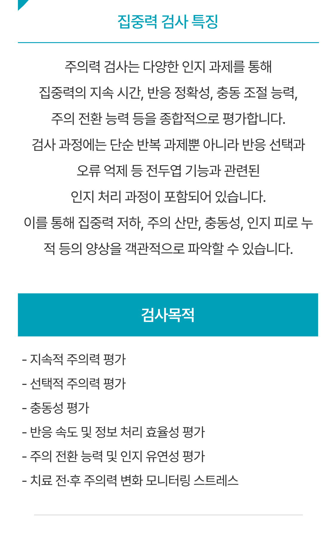 집중력 검사 특징