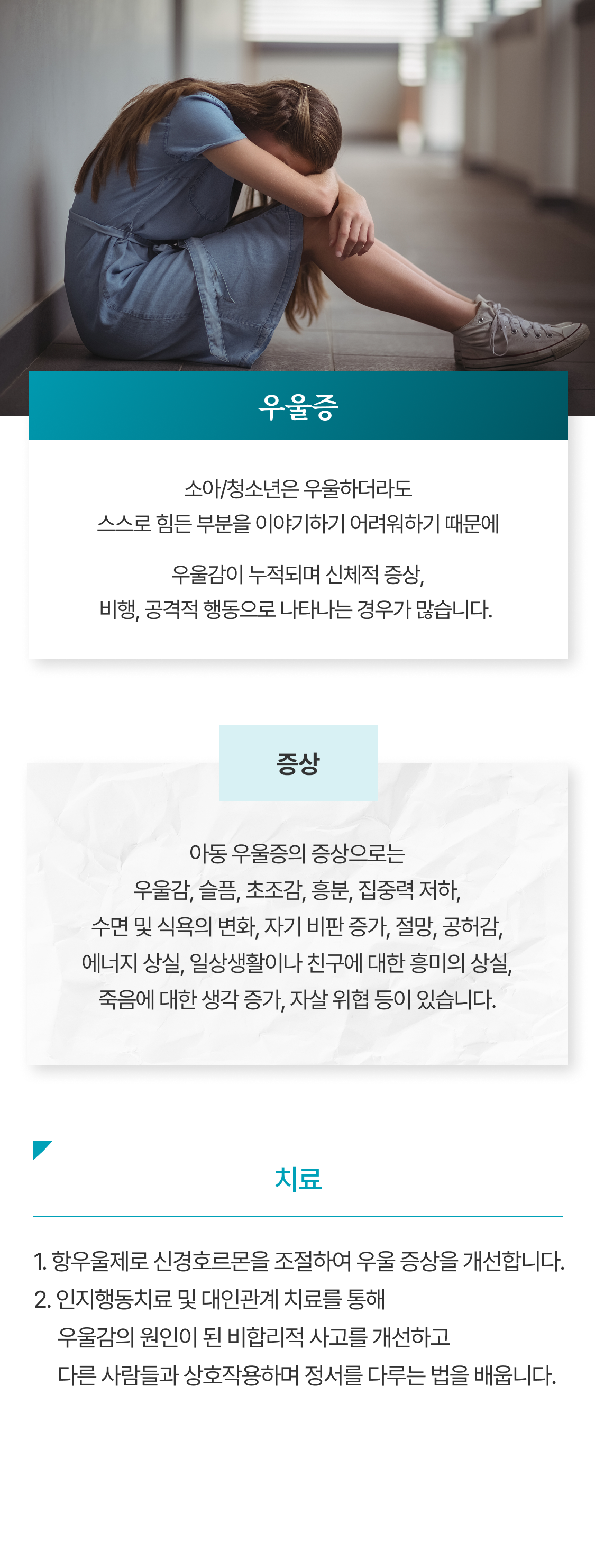 소아/청소년은 우울하더라도 스스로 힘든 부분을 이야기하기 어려워하기 때문에